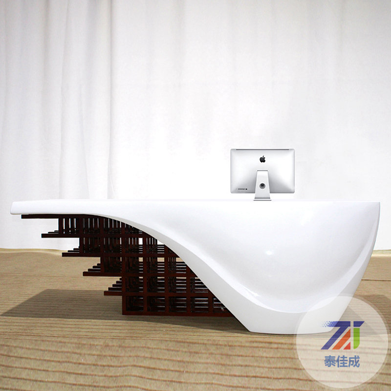 公司烤漆前臺(tái)玻璃鋼接待臺(tái)美容院簡(jiǎn)約時(shí)尚異形個(gè)性吧臺(tái)咨詢(xún)臺(tái)定制