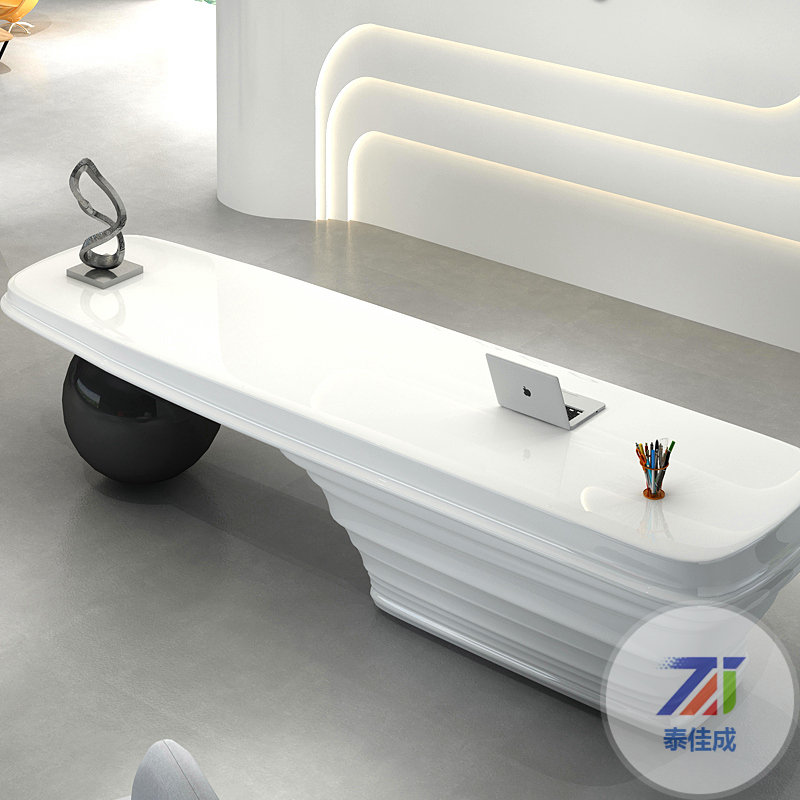 定制創(chuàng)意異形藝術(shù)玻璃鋼烤漆吧臺(tái)收銀臺(tái)大堂美容院公司前臺(tái)接待臺(tái)