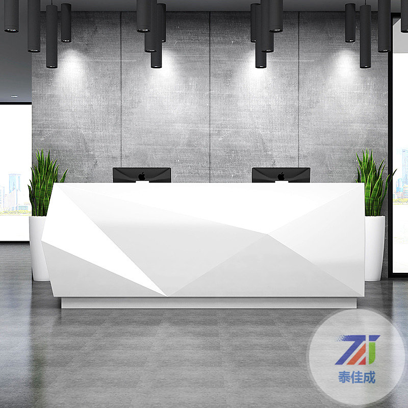 酒店美陳商場(chǎng)服務(wù)前臺(tái)玻璃鋼辦公家具創(chuàng)意藝術(shù)波浪形吧臺(tái)生產(chǎn)廠家